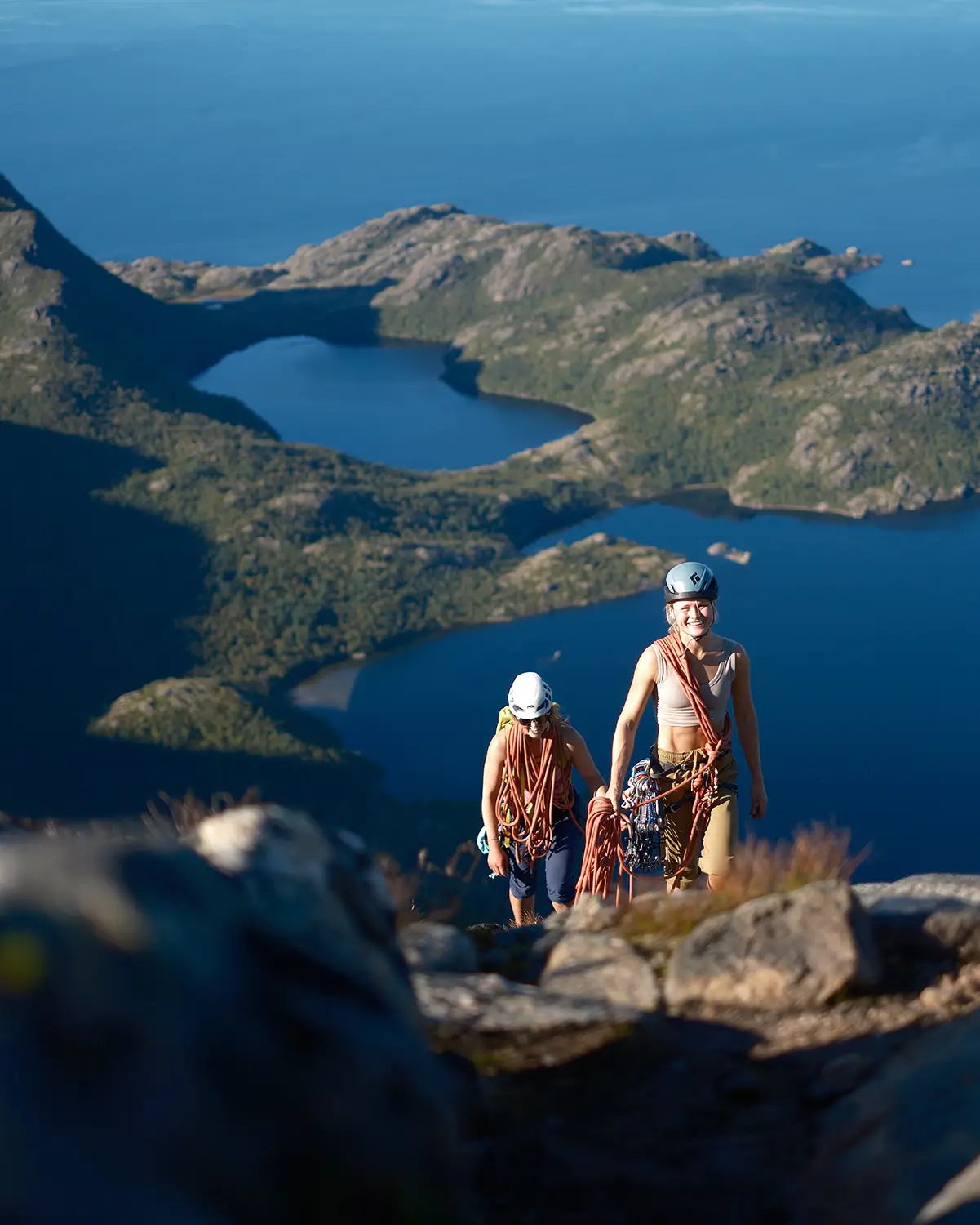 Uke 2: Lofoten – vi jobber videre med sikringshåndverket og øver på kameratredning. Vi klatrer lengre ruter med magisk utsikt.